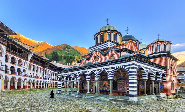 ブルガリアを代表する世界遺産。外観・回廊・教会内部まで荘厳で、宗教番組・歴史番組に最適。